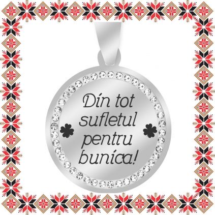 Martisor Pandantiv Inox Banut Pietre Argintiu Din tot Sufletul Bunica