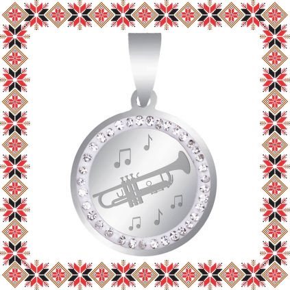 Martisor Pandantiv Inox Banut Pietre Argintiu Muzica Trompeta