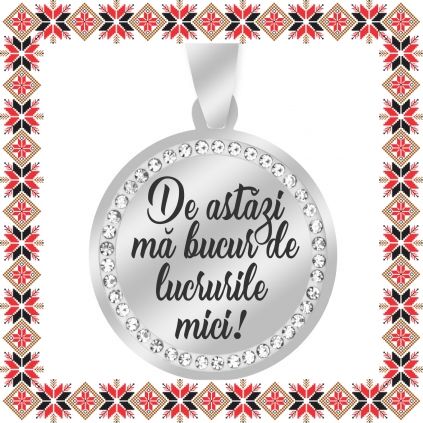Martisor Pandantiv Inox Banut Pietre Argintiu Ma bucur de Lucrurile Mici