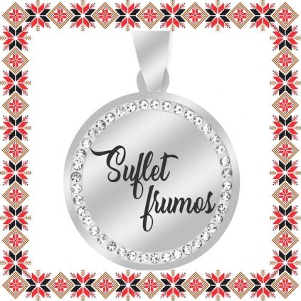 Martisor Pandantiv Inox Banut Pietre Argintiu Suflet Frumos
