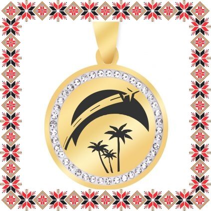 Pandantiv martisor in forma de banut norocos din inox de culoare aurie cu pietricele multifatetate transparente. Pandantiv gravat cu palmieri si un avion in zbor. Un martisor personalizat, incarcat de semnificatie, creat special pentru ea!Alege un martisor realizat din otel inoxidabil pentru ca nu isi schimba culoarea, este rezistent in timp si poate fi purtat tot anul ca accesoriu la colier, potrivit oricarei tinute. Ofera primavara in dar cu un martisor special!