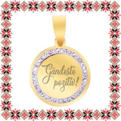 Martisor Pandantiv Inox Banut Pietre Auriu Gandeste pozitiv