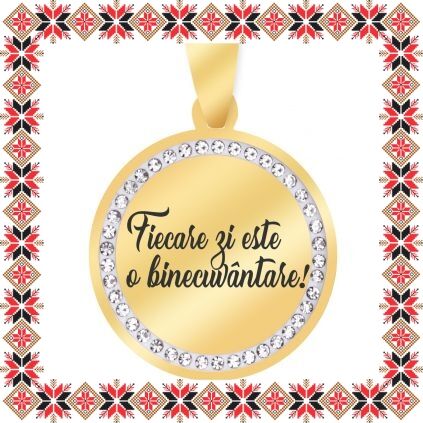 Martisor Pandantiv Inox Banut Pietre Auriu Fiecare Zi O Binecuvantare