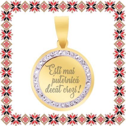 Martisor Pandantiv Inox Banut Pietre Auriu Mai Puternica