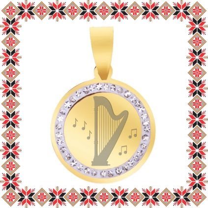 Martisor Pandantiv Inox Banut Pietre Auriu Muzica Harpa
