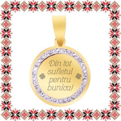 Martisor Pandantiv Inox Banut Pietre Auriu Din tot Sufletul Bunica