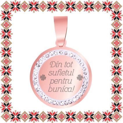 Martisor Pandantiv Inox Banut Pietre Rose Gold Din tot Sufletul Bunica