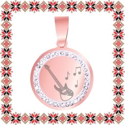 Martisor Pandantiv Inox Banut Pietre Rose Gold Muzica Chitara