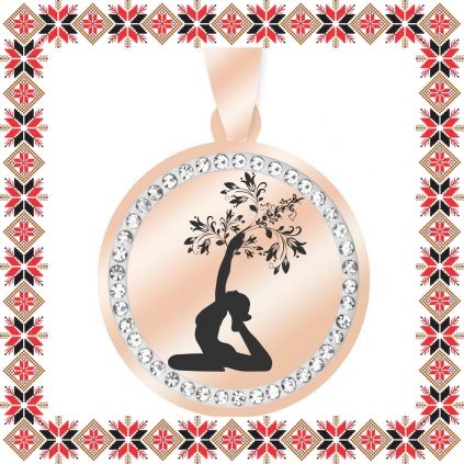 Martisor Pandantiv Inox Banut Pietre Rose Gold Yoga Natura