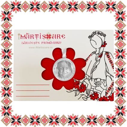 Martisor ambalat pe suport de carton cu catifea rosie si plic scrisoare de la doamna Primavara, de culoare bej cu motive traditionale romanesti. Martisorul este insotit de plic de hartie imprimat cu motive traditionale romanesti si snur de martisor. Deasemenea veti primi alaturi de martisor, bucuria cu care noi l-am creat, tot ce trebuie sa faceti este sa adaugati bucuria daruirii si sa il oferiti persoanei dragi impreuna cu primavara.