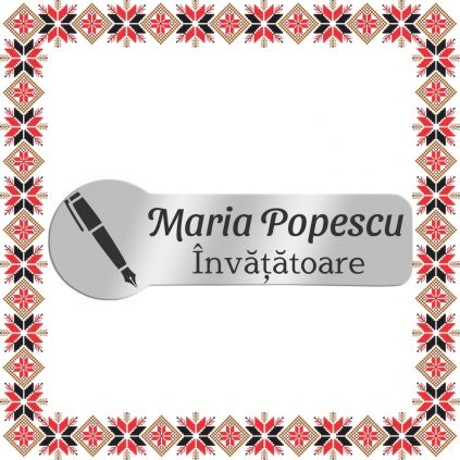 Martisor brosa tip ecuson personalizat pentru invatatoare. Realizat din inox argintiu si personalizat prin gravura laser cu un simbol reprezentativ, numele si specializarea. Opteaza pentru un martisor realizat din otel inoxidabil pentru ca primitoarea sa il poata purta tot anul.