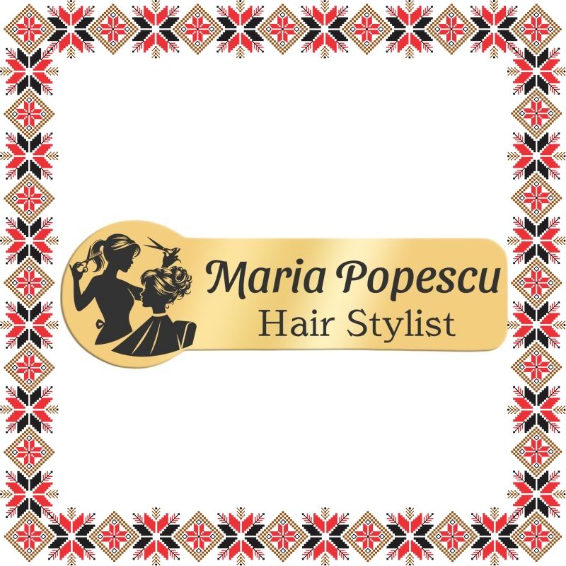 Martisor Personalizat Brosa Ecuson Inox Placat Aur 18K Hair Stylist Nume