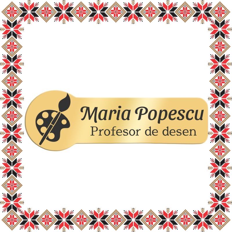 Martisor brosa tip ecuson personalizat pentru artistii plastici, pictori si profesorii de desen. Realizat din inox acoperit PVD cu aur si personalizat prin gravura laser cu un simbol reprezentativ, numele si specializarea. Daruieste martisoare deosebite, personalizate special pentru oamenii pe care ii iubesti, pe care ii admiri, celor carora vrei sa le multumesti si celor care isi practica meseria cu pasiune si entuziasm! Opteaza pentru un martisor realizat din otel inoxidabil pentru ca primitoarea sa il poata purta tot anul.