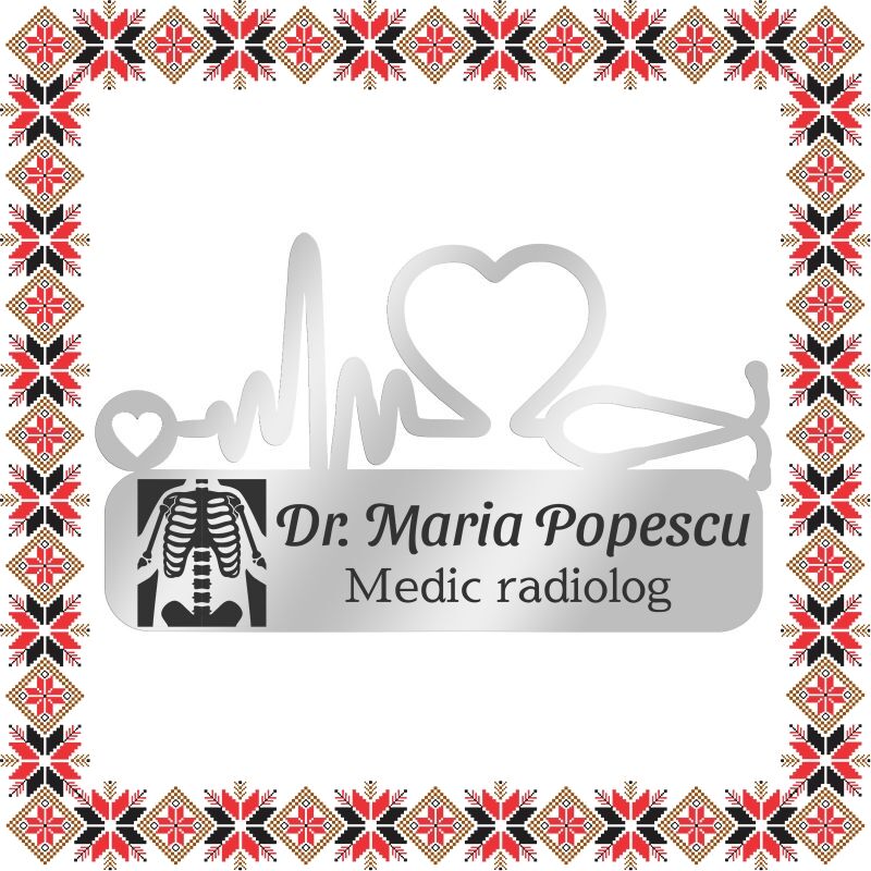 Martisor brosa personalizata tip ecuson medical. Realizat din inox si personalizat pentru cadrele medicale prin gravura laser cu simbol radiologie, numele si specializarea doctorului sau asistentei. Forma eleganta de placuta cu stetoscop, inima si ritm cardiac. Daruieste martisoare deosebite, personalizate special pentru oamenii pe care ii iubesti, pe care ii admiri, celor carora vrei sa le multumesti si celor carora vrei sa le daruiesti un gand bun odata cu venirea primaverii! Opteaza pentru un martisor realizat din otel inoxidabil pentru ca primitoarea sa il poata purta tot anul.