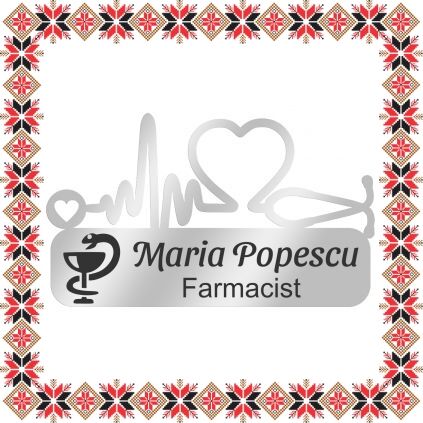 Martisor brosa personalizata tip ecuson medical. Realizat din inox si personalizat pentru farmacisti prin gravura laser cu simbol farmacologie, numele si specializarea sau titulatura. Forma eleganta de placuta cu stetoscop, inima si ritm cardiac. Daruieste martisoare deosebite, personalizate special pentru oamenii pe care ii iubesti, pe care ii admiri, celor carora vrei sa le multumesti si celor carora vrei sa le daruiesti un gand bun odata cu venirea primaverii! Opteaza pentru un martisor realizat din otel inoxidabil pentru ca primitoarea sa il poata purta tot anul.