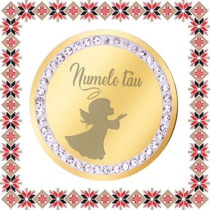 Brosa martisor banut din inox de culoare aurie cu pietricele multifatetate transparente, gravata cu ingeras si nume. Daruieste martisoare personalizate! Alege un martisor realizat din otel inoxidabil pentru ca nu isi schimba culoarea, este rezistent in timp si poate fi purtat tot anul ca accesoriu de prindere a esarfei, ca brosa pe sacou sau ca decoratiune pe geanta. Ofera primavara in dar cu un martisor creat special pentru tine!