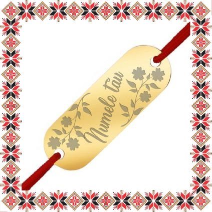 Bratara martisor cu pandantiv in forma de placuta ovala de culoare aurie gravata cu nume si crengute cu flori. Alege un martisor realizat din otel inoxidabil pentru ca nu isi schimba culoarea, este rezistent in timp si poate fi purtat tot anul ca accesoriu bratara potrivit oricarei tinute. Ofera primavara in dar cu un martisor creat special pentru tine! Gravam cu bucurie!