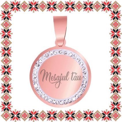 Martisor Personalizat Pandantiv Inox Banut Pietre Mesaj Rose Gold