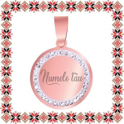Martisor Personalizat Pandantiv Inox Banut Pietre Nume Rose Gold