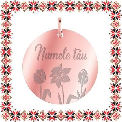 Martisor Personalizat Pandantiv Inox Banut Rose Gold Nume Flori